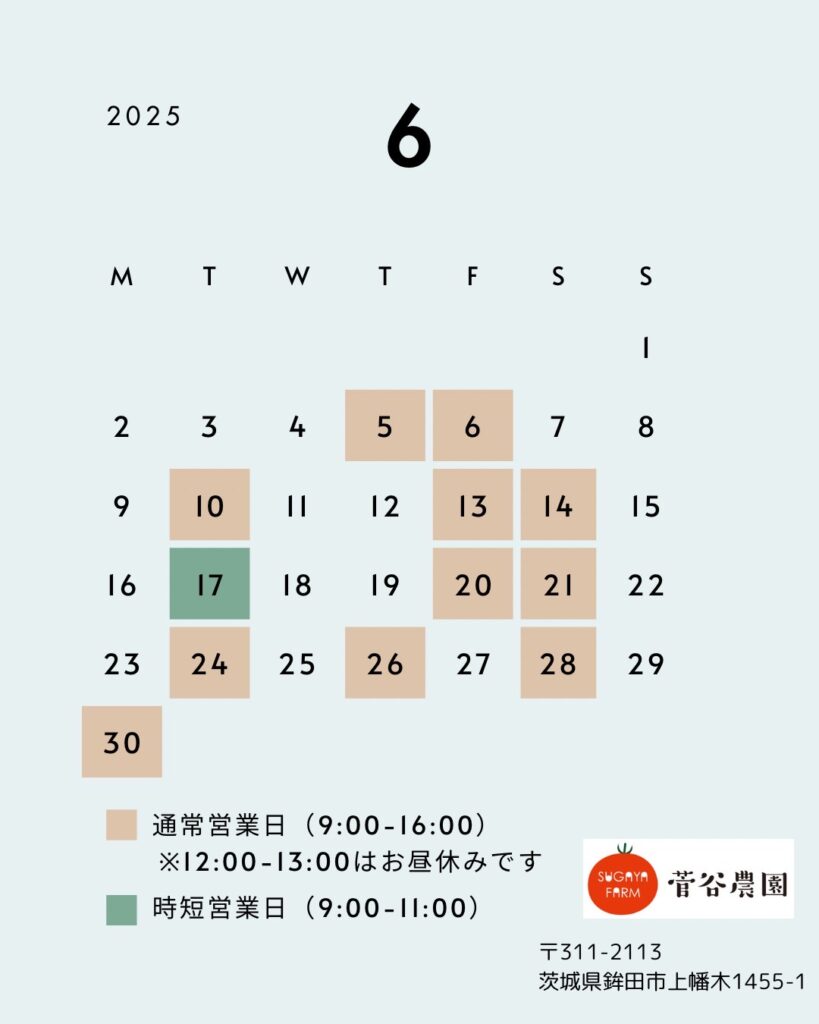 6月の直売所のスケジュールは下の画像をご確認ください。